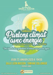 Le collectif citoyen Simiane en Transition organise une conférence gratuite, ludique et accessible à tous, pour comprendre les enjeux actuels liés à l’énergie et au climat. Cette conférence sera animée par Cécile Lafforgue de l’association Avenir Climatique et sera suivie d’un échange sous forme de questions-réponses avec le public.